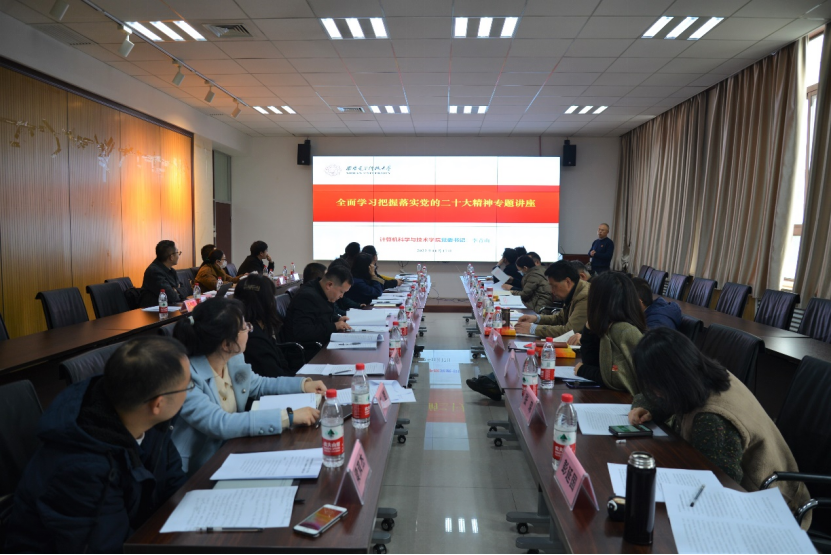 (通讯员 同榛)11月17日上午,计算机科学与技术公司党委在北校区主楼二区319会议室召开领导班子专题读书班暨党委理论中心组(扩大)学习会议,开展党的二十大精神第一次专题学习研讨。公司班子成员、两委委员、各党支部书记、系所中心负责人参加了集体学习,会议由公司党委书记李青山主持。