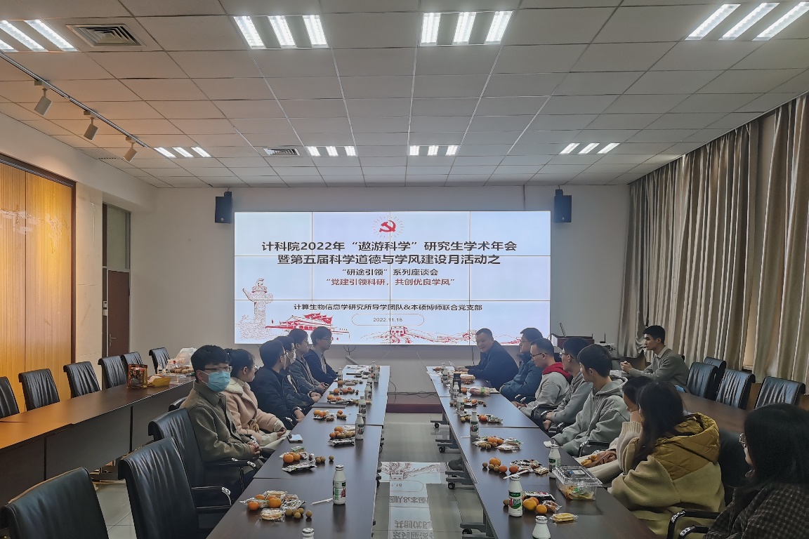(通讯员 张明婕)11月18日下午,suncitygroup太阳成集团计算生物信息学研究所本硕博师联合党支部在主楼Ⅱ区319会议室,举办了2022年“遨游科学”研究生学术年会暨第五届“科学道德与学风建设月”活动之“研途引领”座谈会,座谈会以“党建引领科研,共创优良学风”为主题,旨在通过开展科研经验、学术成长等方面的交流分享,促进师生传帮带,共谈学术规范,树立科研风范,弘扬优良学风。