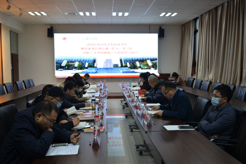 (通讯员 同榛)11月24日下午,计算机科学与技术公司党委在北校区主楼二区319会议室召开领导班子专题读书班暨党委理论中心组(扩大)学习会议,开展党的二十大精神第三次专题学习研讨。公司班子成员、两委委员、教职工支部书记、华山特聘教授以上人员参加了集体学习。会议邀请校发展规划部部长邓成专题宣讲,校第三督导组到会指导。会议由公司党委书记李青山主持。