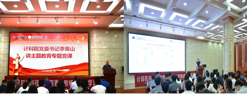 在纪念馆会议室内,公司党委书记李青山讲授《贯彻落实习近平新时代中国特色社会主义思想,赓续西电红色基因,传承计科三系精神》专题党课,解读了习近平新时代中国特色社会主义思想的主要内容和习近平总书记关于教育、科技、人才的重要论述,回顾了公司基层组织架构优化和三系精神凝练等重点工作,鼓励教师充分利用公司搬迁南校区契机,传承西电红色基因和三系精神,实现个人发展与时代、民族和国家发展同频共振。公司执行经理崔江涛介绍了公司近几年在团队队伍建设、推动有组织的科研等方面取得的成效,并从基础学科拔尖人才培养、青年教师自由探索与团队科研方向融合、合作拓展和沟通能力提升等方面鼓励青年教师,要沉得住气、静得下心,脚踏实地扎根课堂,把自己的科学研究与国家需求紧密结合起来。