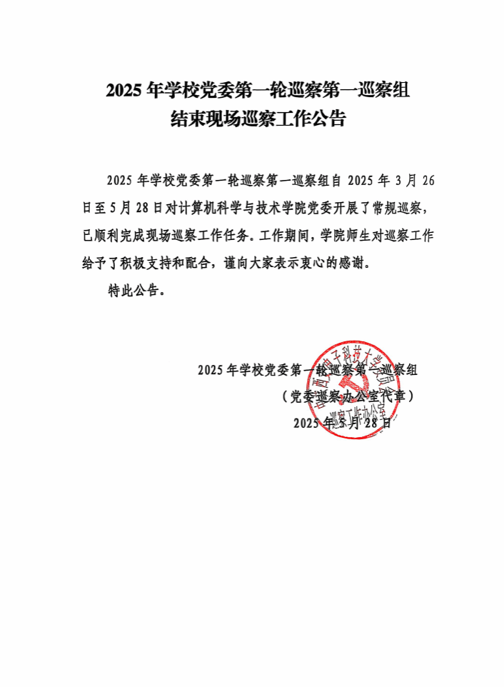 2025年公司党委第一轮巡察第一巡察组结束现场巡察工作公告