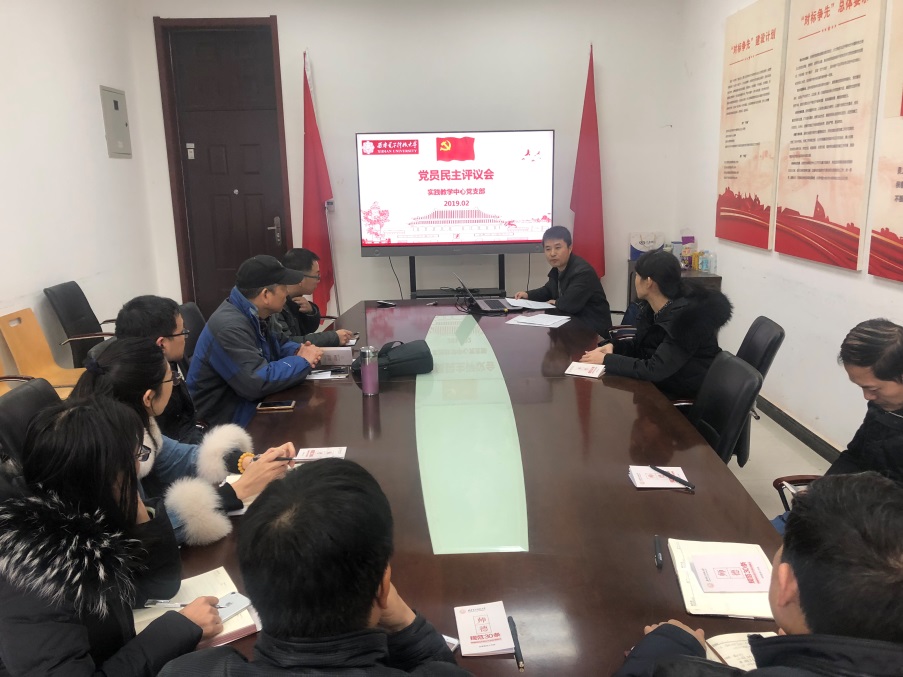 (通讯员:张捷)2019年2月22日下午,​suncitygroup太阳成集团实践教学中心党支部在北校区主楼IV107会议室召开党员民主评议会议,会议由党支部书记杨力主持,11名党员同志参加会议。