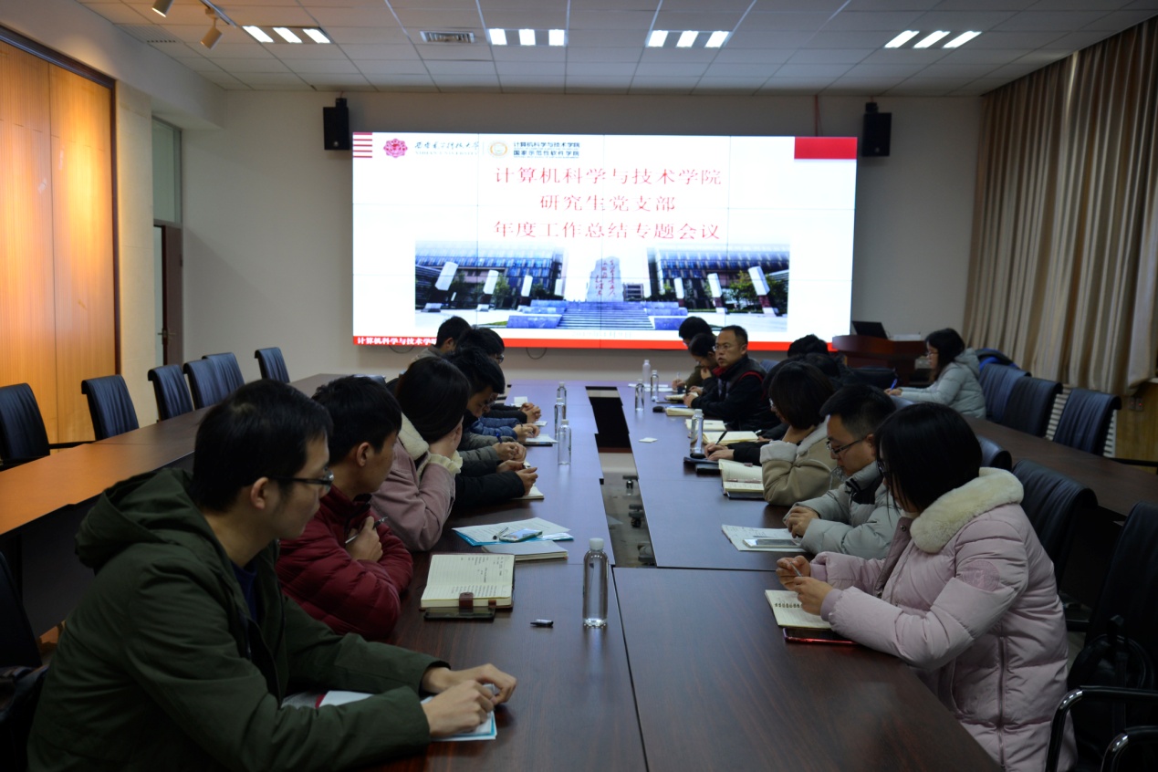 研究生支部的16位支部书记主要从常规学习、主题党日、党员发展等方面详细回顾了2018年下半年支部工作开展情况。各支部均能严格落实“三会一课”常规学习,发言各具特色,其中,硕士031603班第一支部书记毛彦淇从支委开展工作角度谈及支委班子应认真研读《中国共产党支部工作条例》等文件,加强理论武装。硕士031601班第一支部、硕士031603班第二支部等多位支部书记均谈到了以“西电计算机专业建立60周年”为契机,开展了观看院庆视频、座谈讨论、志愿者行动等形式多样的主题活动。硕士031711班第一支部书记李永顺同志说,支部以“实验室安全教育”为主题,通过实例警钟长鸣,确保安全意识常在。硕士031712班第二支部书记郝晓阳同志分享了ThoughtWorks名企交流、秦岭捡垃圾公益行、“两学一做”每日十题、支部特色图书角等工作进展。硕士2017级软件工程支部书记谯业石同志结合软件工程培养目标,重点介绍了就业交流主题党日的活动成效。非全日制研究生联合支部书记张尚伟同志谈到,作为一名辅导员的同时又是支部书记,应从规范工作流程、激发参与热情、创新活动形式、密切联系业务等方面不断增强支部工作实效。