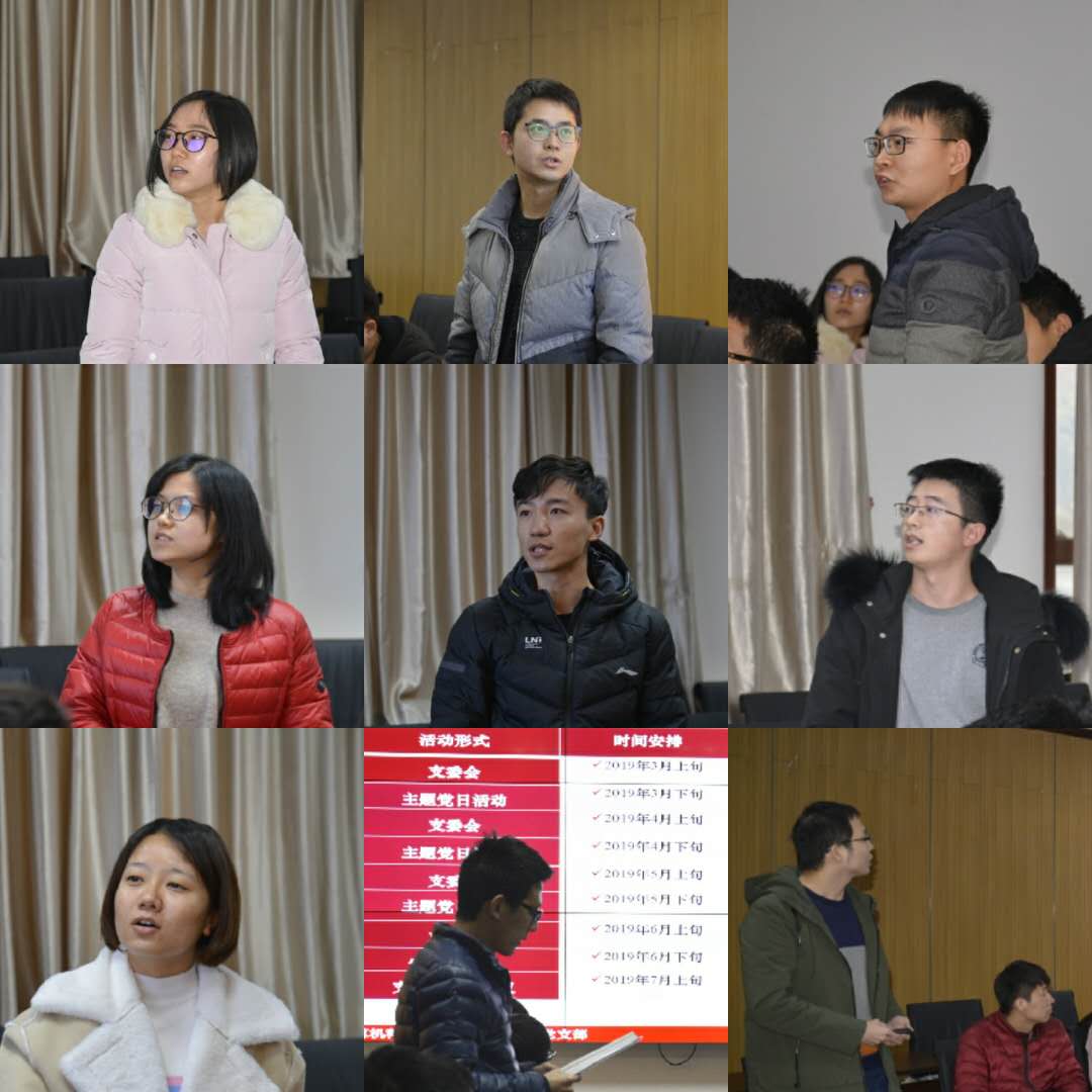针对2019年上半年支部工作计划,各支部书记均详细汇报了支部工作的具体路线图和时间表。其中,硕士031601班第二支部、硕士031603班第一支部等毕业年级的支部书记均谈到了“端正科研风气、抵制学术造假”相关活动计划。硕士2016级、2017级软件工程支部书记分享了支部联合举办就业分享会的活动思路。硕士031712班第一支部和第二支部书记以“庆祝祖国70华诞”、“庆祝全国第35个教师节”等为契机,设计了特色活动方案。非全日制研究生联合支部书记张尚伟同志汇报了“听党话,跟党走”主题活动的具体安排。