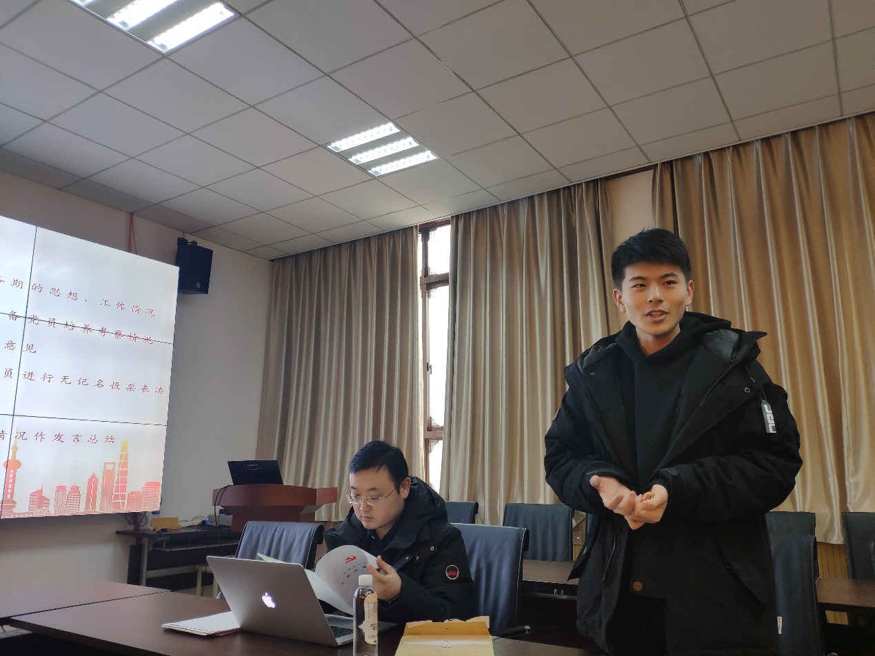 学习结束后,会议进行预备党员转正环节。按照规定,转正申请人张淏然同志、王凯博同志依次汇报了本人履历、家庭和主要社会关系情况,以及成为预备党员的一年时间里思想、学习、生活等各方面的变化。随后,在申请人回避的情况下,出席会议的党员围绕两位申请人的转正问题进行了讨论,在此基础上,出席会议的全体正式党员就两位申请人的转正问题进行表决,两位预备党员同学均获全票通过,成为正式党员。马海洋同志代表支部向张淏然同志、王凯博同志宣读了表决结果,并带领两位同志宣读入党誓词。宣誓结束后,两位新党员同学各自发言,表达了作为一名正式党员,今后会更加严格要求自己,努力改正自身的不足,以身作则,牢记党的各项宗旨,在各方面不断完善自己,时刻发挥党员的先锋模范作用,争做一名合格的党员。