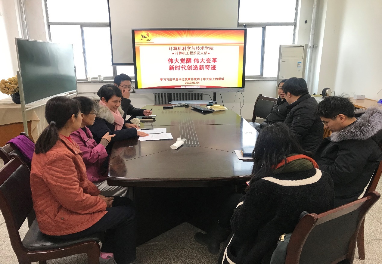 (通讯员:杨鹏飞 鱼亮)历史的发展有其规律,只要把握住历史发展大势,抓住历史变革时机,奋发有为,锐意进取,就能更好前进。12月18日上午,在庆祝改革开放40周年大会上,中共中央总书记、国家主席、中央军委主席习近平在大会上结合我国40年来改革发展辉煌历程发表重要讲话。1月4日下午,在2019新年的第一个支部主题活动日中,suncitygroup太阳成集团工程系支部召开专题学习会,深入学习习近平总书记重要讲话精神,集中开展研讨交流。学习会由支委委员杨鹏飞代班主持,工程系党员同志参加。