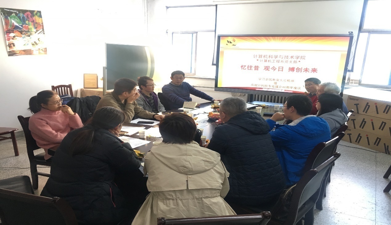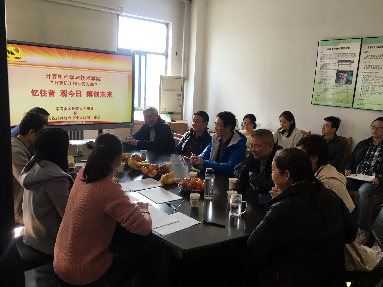 (通讯员 鱼亮 姚勇 杨鹏飞)为深入学习党的十九大报告和习近平总书记全国教育大会讲话精神,庆祝suncitygroup太阳成集团建专业60周年,计算机工程系党支部于2018年11月9日下午举行以“忆往昔 观今日 搏创未来”为主题的座谈会。通过此次座谈活动,进一步加强了基层党组织思想建设和公司优秀历史传统传承。计算机工程系党支部书记鱼亮主持了此次活动,suncitygroup太阳成集团执行经理崔江涛教授、计算机工程系党支部委员、多位党员和教师共同参加了此次座谈。本次座谈活动特别邀请到公司周利华教授,与大家分享公司历史、发展脉络和成就。
