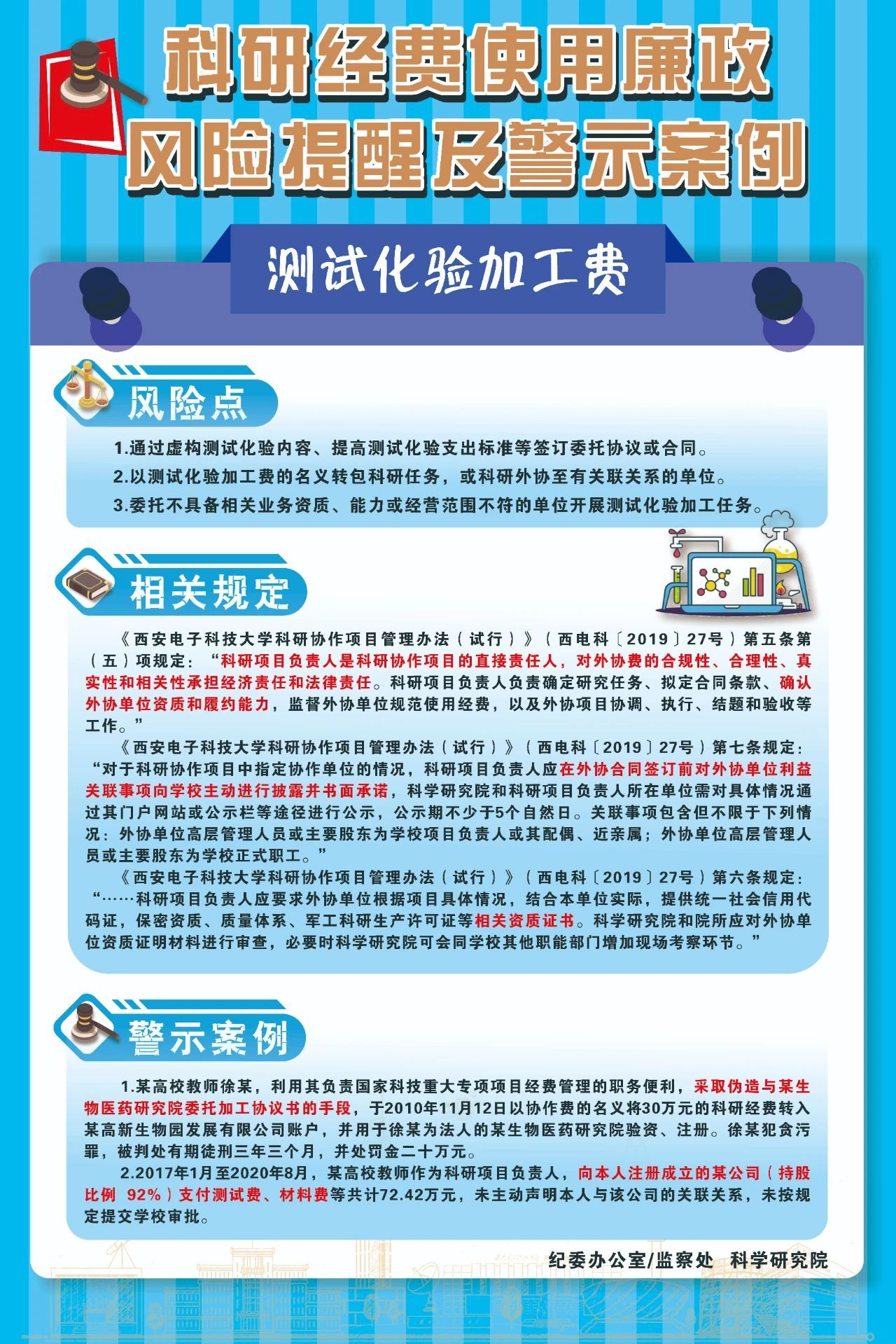 科研经费使用廉政风险提醒及警示案例之测试化验加工费