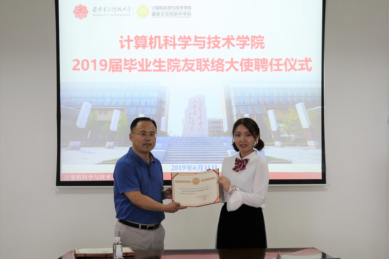 公司在2019届毕业生中共聘任联络大使31人,包括20名本科生、10名硕士研究生和1名博士研究生,实现了公司全部班级941名本科生、445名硕士研究生与15名博士研究生的全覆盖。毕业后,联络大使将成为院友会平台建设的重要力量,公司也会秉承终生服务院友的理念,持续为院友提供高质量优质服务,共同搭建好属于全体西电计算机人的精神家园。