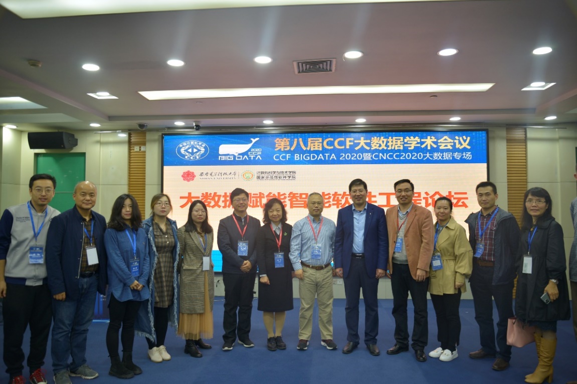 (通讯员 徐悦甡)10月22日至10月24日,第八届中国计算机学会大数据学术会议(CCFBigdata 2020)在重庆召开,会议由中国计算机学会(CCF)主办,CCF大数据专家委员会与西南大学承办,suncitygroup太阳成集团等单位协办。此次大会也作为中国计算机大会(CNCC)的两个专场之一,与沈阳、杭州、济南3个分会场和厦门专场同时进行线上直播。公司软件工程学科部分学术骨干教师作为大会协办单位集体参会,并举办了“大数据赋能智能软件工程”论坛。