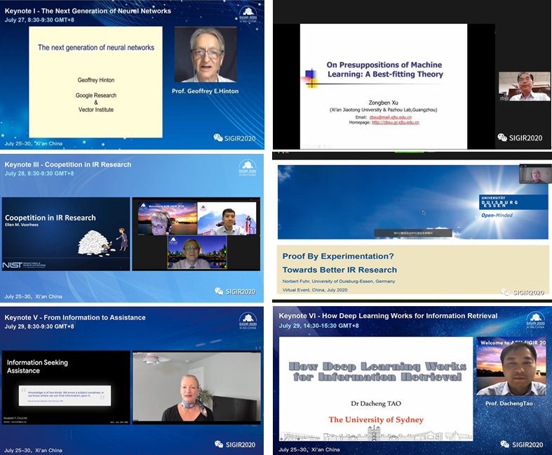 大会邀请到了多位信息检索和机器学习领域的嘉宾发表主题演讲,包括加拿大多伦多大学荣誉教授、图灵奖得主Geoffrey Hinton;西安交通大学教授、中国科公司院士徐宗本;美国国家标准技术研究院(NIST)的资深科学家、ACM Fellow Ellen Voorhees;德国杜伊斯堡埃森大学教授、信息检索终身成就奖Salton Award获得者Norbert Fuhr;Google用户体验部门总监、ACM Fellow、ACM副主席Elizabeth Churchill;悉尼大学教授、澳大利亚科公司院士、欧洲科公司院士陶大程等。