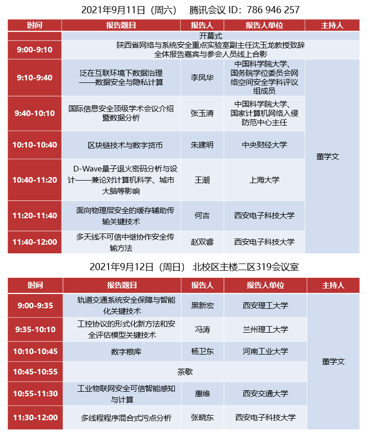 9月11日:腾讯会议ID:786 946 257;9月12日,北校区主楼二区319会议室
