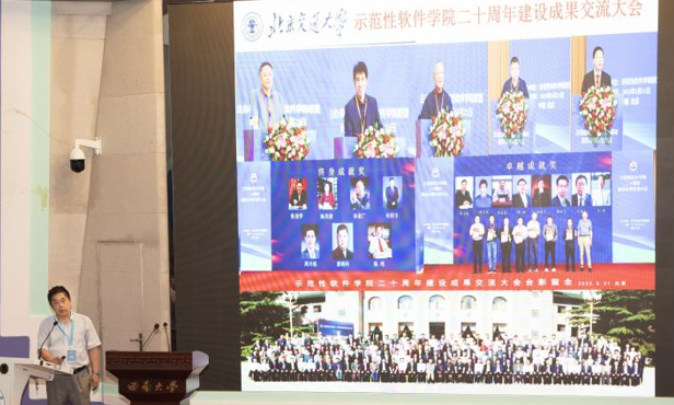 特邀报告环节邀请了国防科技大学毛新军教授、西南大学陈武教授、中软国际教育科技集团王晓华副总裁等做报告。毛新军教授在“教育部‘101计划’软件工程课程建设进展及成果”报告中介绍了自2022年教育部启动计算机领域本科公司产品改革试点工作计划以来开展的一系列工作,并对计划的使命和任务进行阐释,总结此过程中形成的一系列建设原则和质量要求,并分享取得的初步建设成果和部分教学资源。陈武教授以“面向智慧农业的新型软件人才培养模式探索”为主题,对立足培养面向智慧农业的新型软件人才、探索软件工程特色人才实践创新培养模式等一系列多层次教学研究和改革进行了分享。中软国际教育科技集团王晓华副总裁以“新时代背景下软件工程专业实践教学模式的探索”为主题,分享了中软国际教育科技集团在助力软件工程专业实践教学方面的理念。
