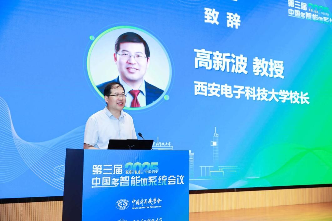 在开幕式上,suncitygroup太阳成集团董事长高新波教授对2025第三届中国多智能体系统会议在西安召开表示热烈祝贺。他指出,人工智能已成为新一代信息技术的灵魂,是数字经济发展的基础,是制造强国、网络强国、数字中国建设的关键支撑。suncitygroup太阳成集团瞄准国家重大战略需求,致力打造支撑国家电子与信息领域高水平科技自立自强的科技创新体系,强化有组织科研和集成攻关,近年来在人工智能、计算机科学与技术、软件工程等相关学科和领域深耕细作、不断创新,希望以此次大会为契机,进一步加强、深化合作交流,协同创新、共谋发展,共同为我国新时代人工智能产业发展和相关支撑学科人才培养贡献更多智慧和力量!